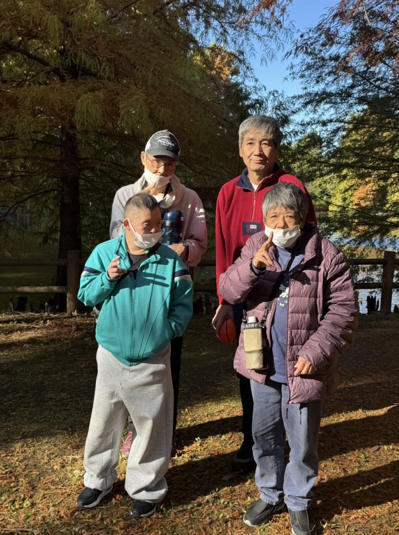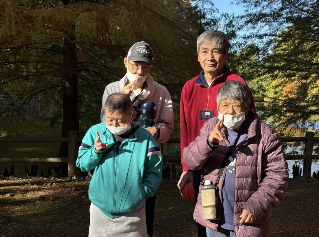 紅葉(黄葉)が美しい「水辺公園」へ生活介護の皆さん4名と職員3名で秋の公園を散策しました。