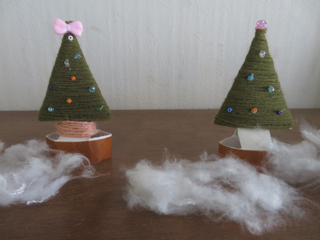 松ぼっくりやトイレットペーパー芯を上手に使って作りました!!