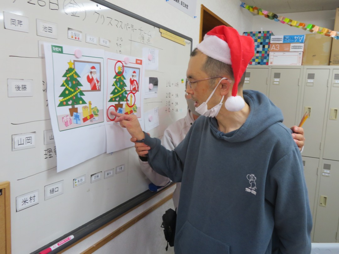 クリスマス会ゲームで一番盛り上がった「間違い探し」皆さん真剣に取り組みました!!