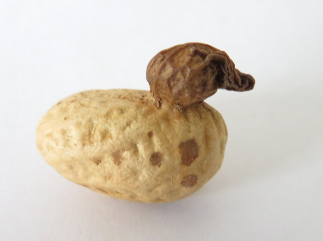 本日午後、殻むき作業を行っていたところ、利用者のYさんから「こんな落花生があった!!」と声がかかり、皆で見たところ、なんと「落花生のアヒル君」が選別前の殻付き落花生に交じっていました。